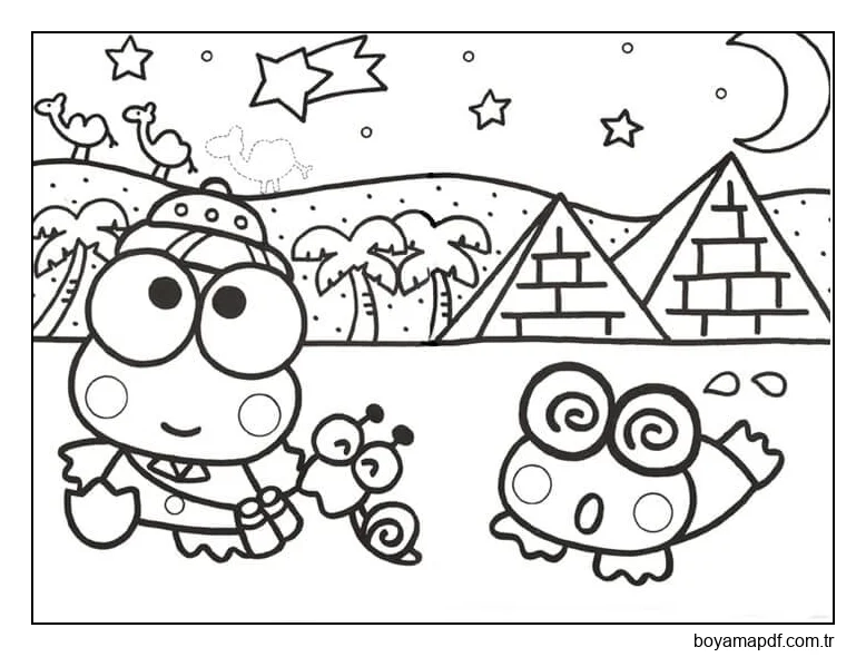 Aynı temaya sahip daha fazla boyama sayfasını görüntülemek için yan alandaki önerileri veya Keroppi kategorisini inceleyebilirsiniz.