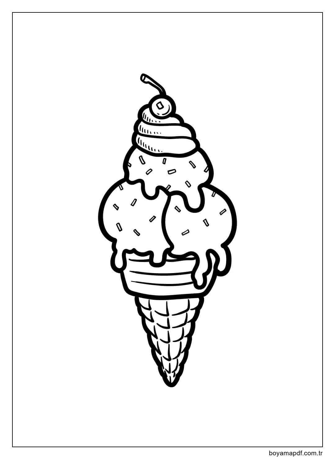 Kiraz ile Dondurma çizimi Boyama Sayfası