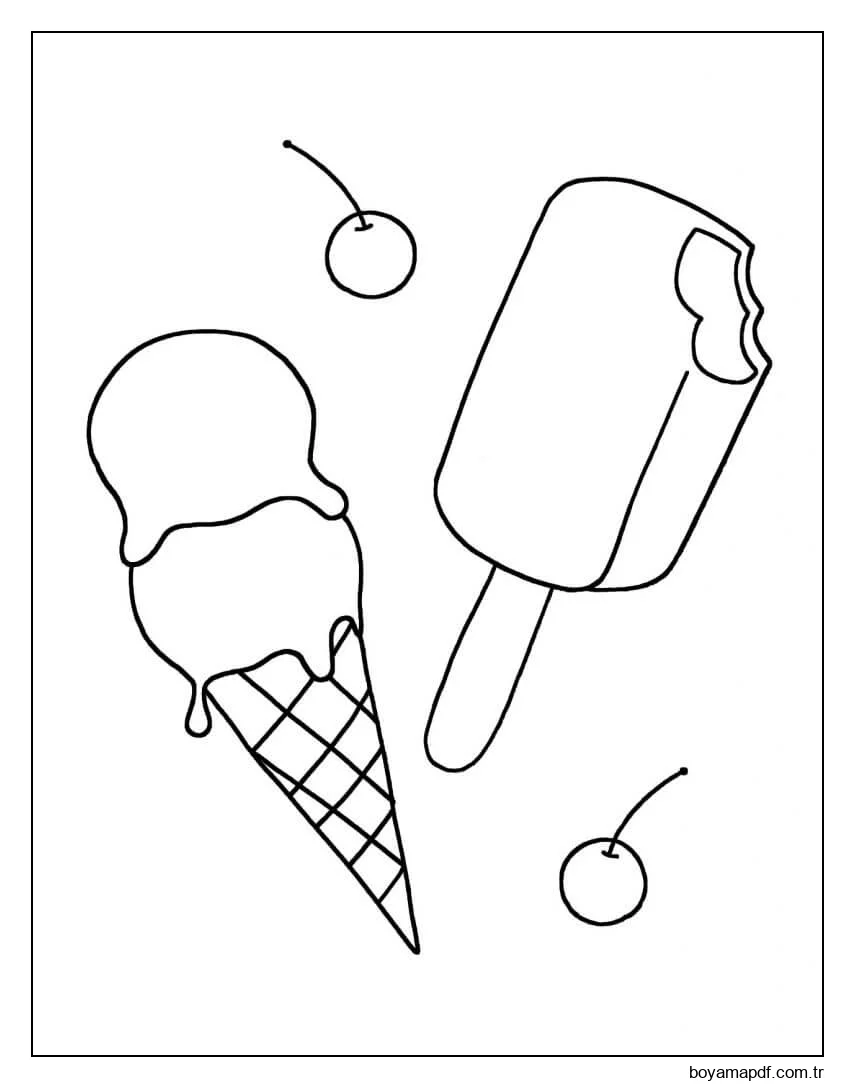 Kiraz ile Iki Dondurma Boyama Sayfası
