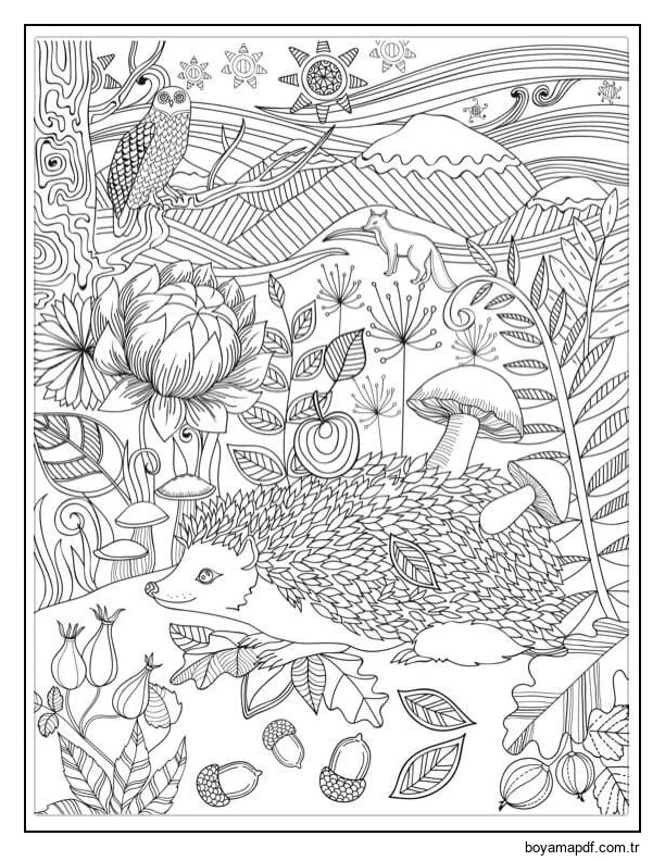 Aynı temaya sahip daha fazla boyama sayfasını görüntülemek için yan alandaki önerileri veya Kirpi kategorisini inceleyebilirsiniz.