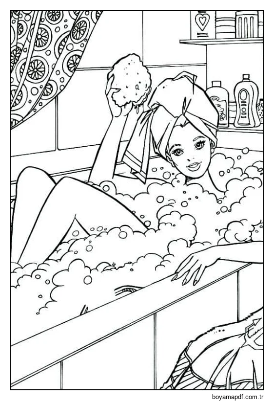 Kız içeride Banyo Boyama Sayfası