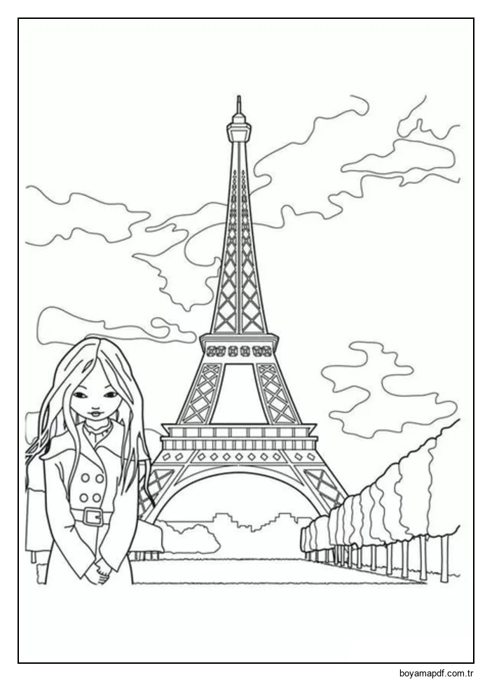 Kız ve Eyfel Kulesi Boyama Sayfası