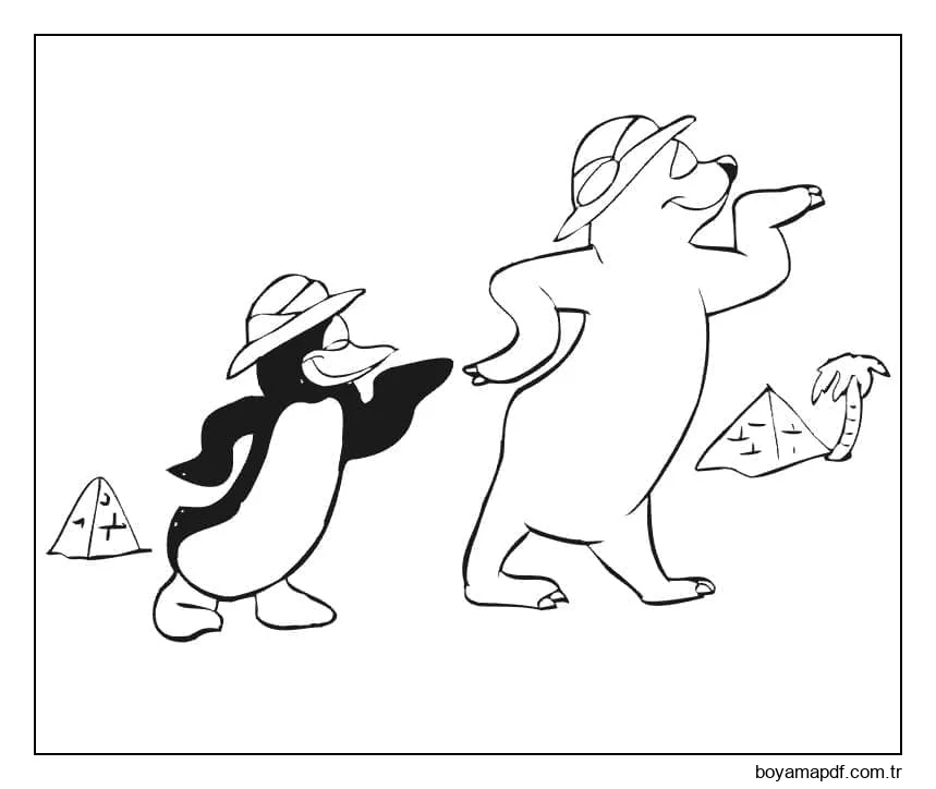 Komik Penguen ve Kutup Ayısı Boyama Sayfası