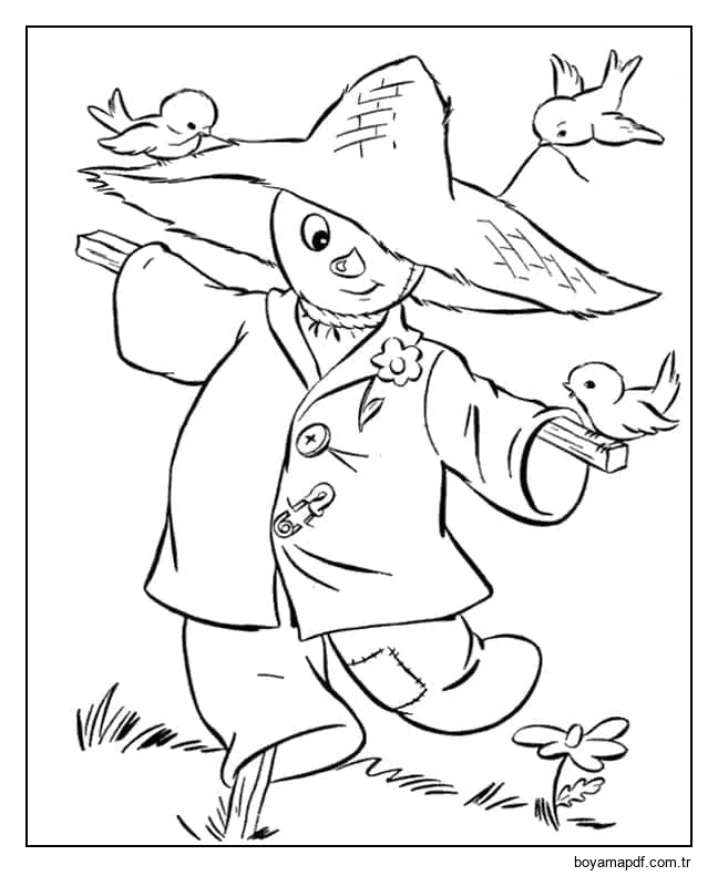 Korkuluk ve Küçük Kuşlar Boyama Sayfası
