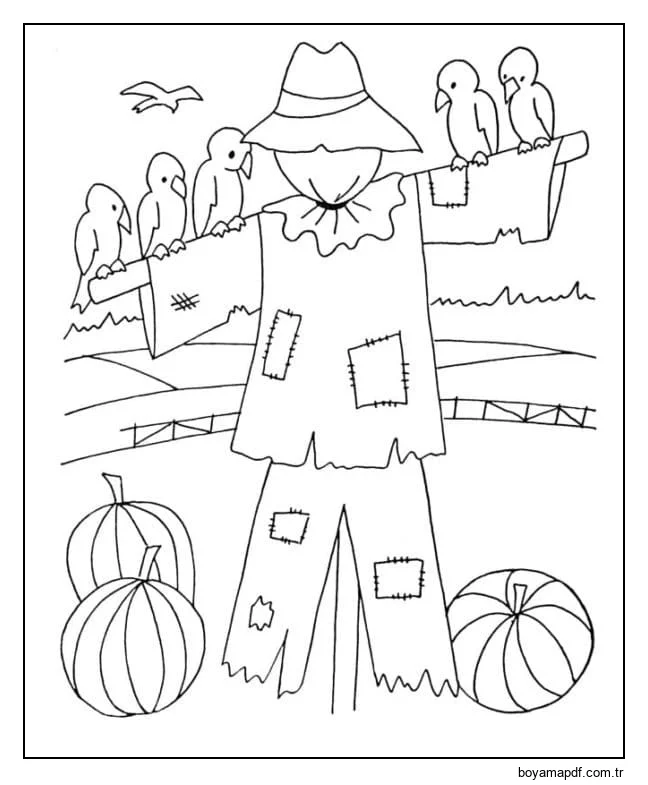 Aynı temaya sahip daha fazla boyama sayfasını görüntülemek için yan alandaki önerileri veya Korkuluk kategorisini inceleyebilirsiniz.