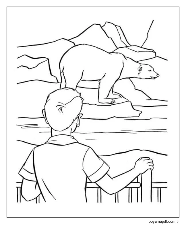 Kutup Ayısını izleyen insan Boyama Sayfası