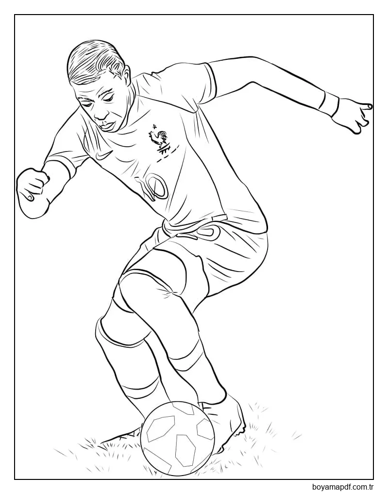 Kylian Mbappe Renklendirmek İçin Boyama Sayfası