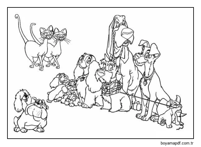Lady ve The Tramp arkadaşlarıyla Boyama Sayfası