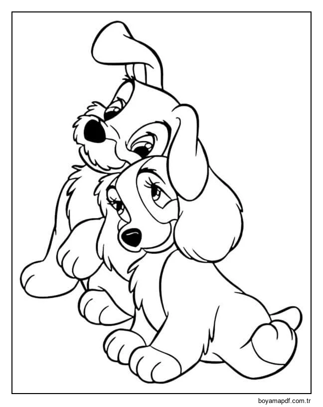 Lady ve The Tramp sarılıyor Boyama Sayfası