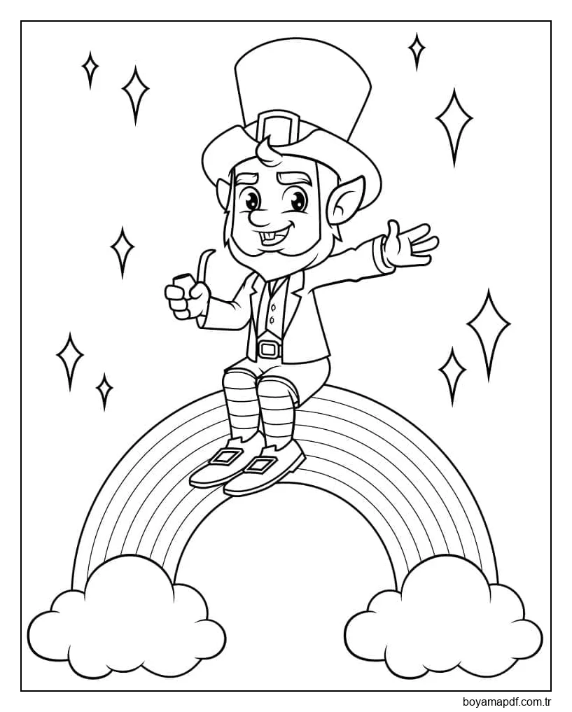 Leprikon Gökkuşağının Üzerinde Oturuyor'u çizin Boyama Sayfası