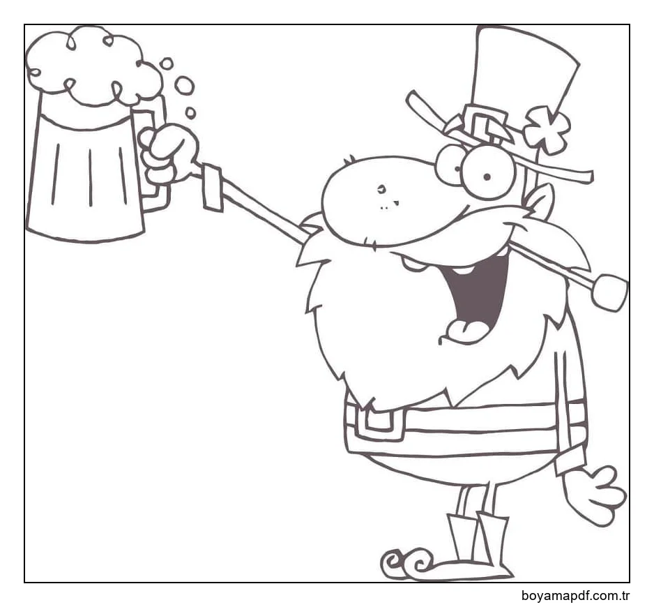 Leprikon'un Bir Bira Kupası Tuttuğunu Çiz Boyama Sayfası