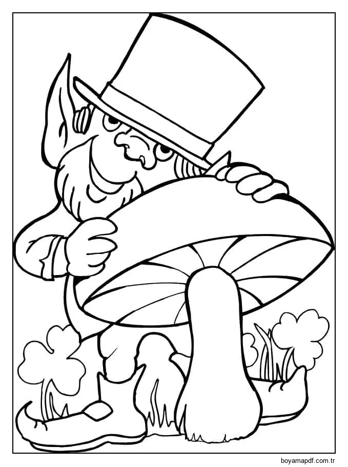 Leprikon ve Bir Mantar çiz Boyama Sayfası