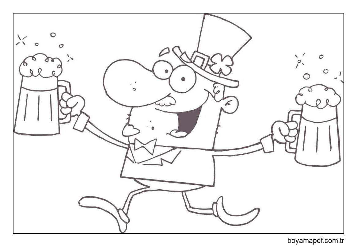 Leprikon ve Bira Kupaları çizin Boyama Sayfası