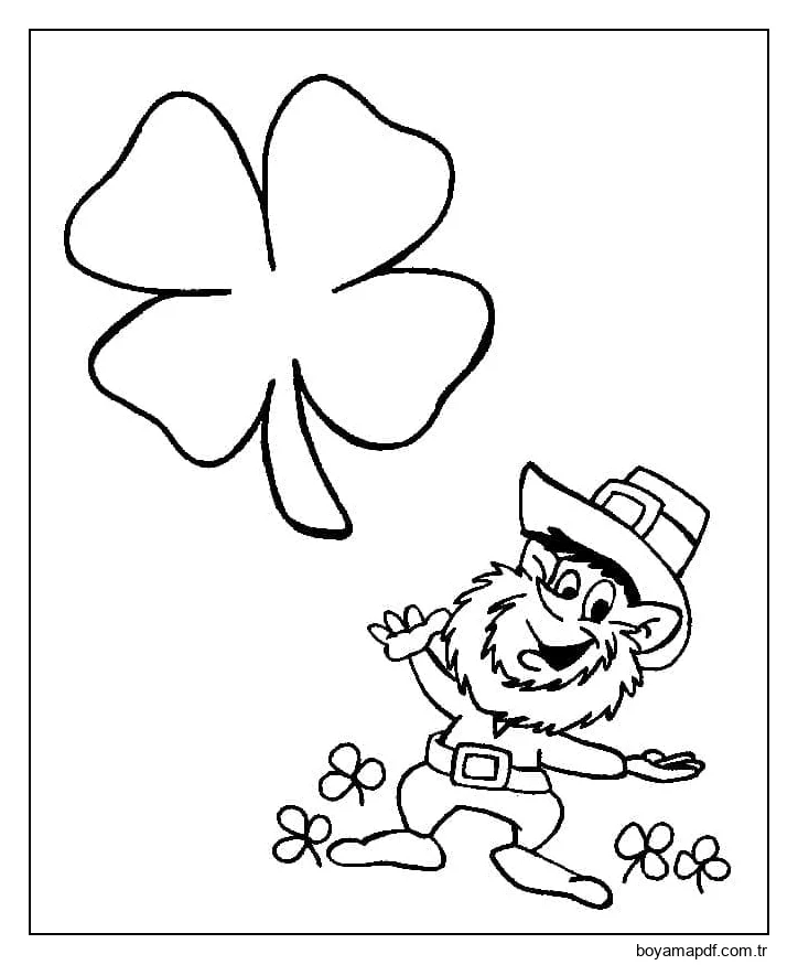 Leprikon ve Dört yapraklı yonca çizin Boyama Sayfası