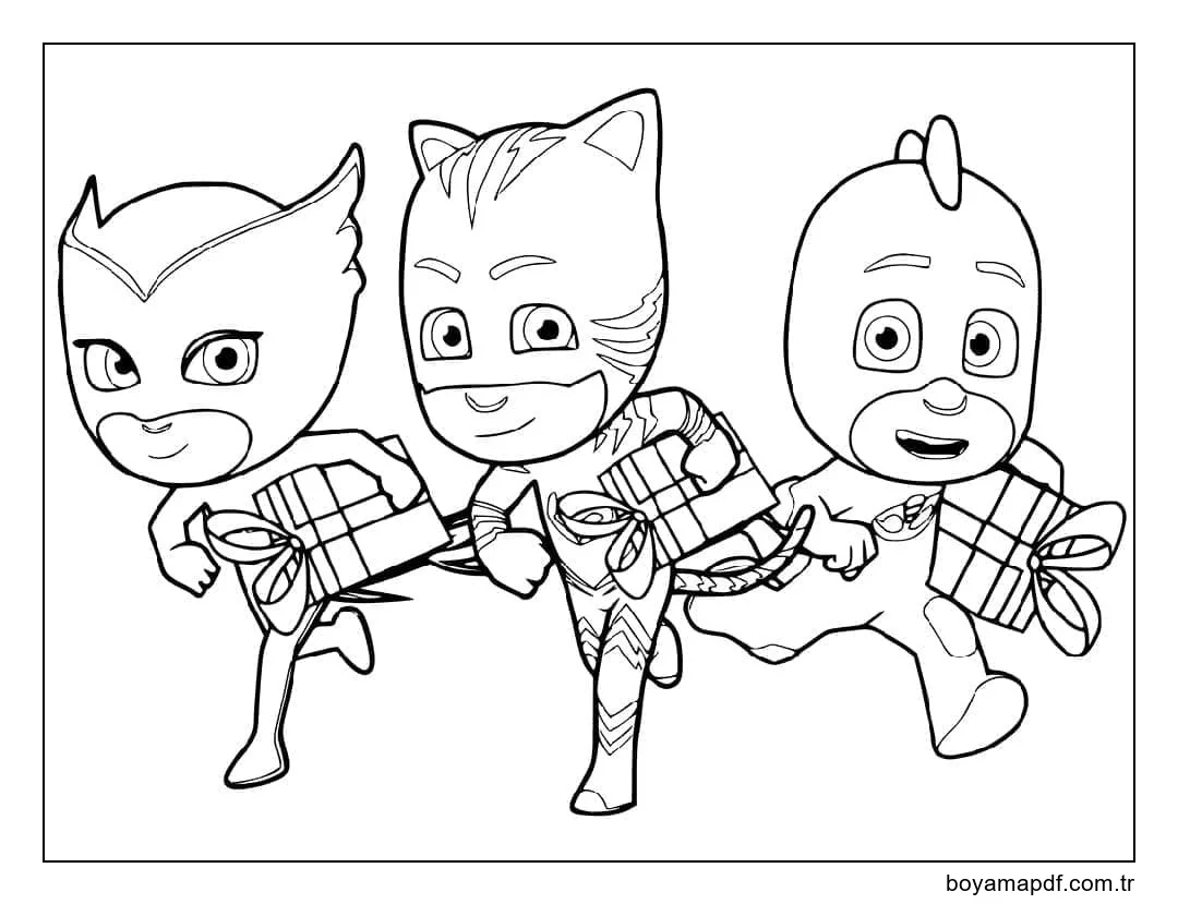 Maskeli Pijamaskeliler giymenin heyecanı Boyama Sayfası