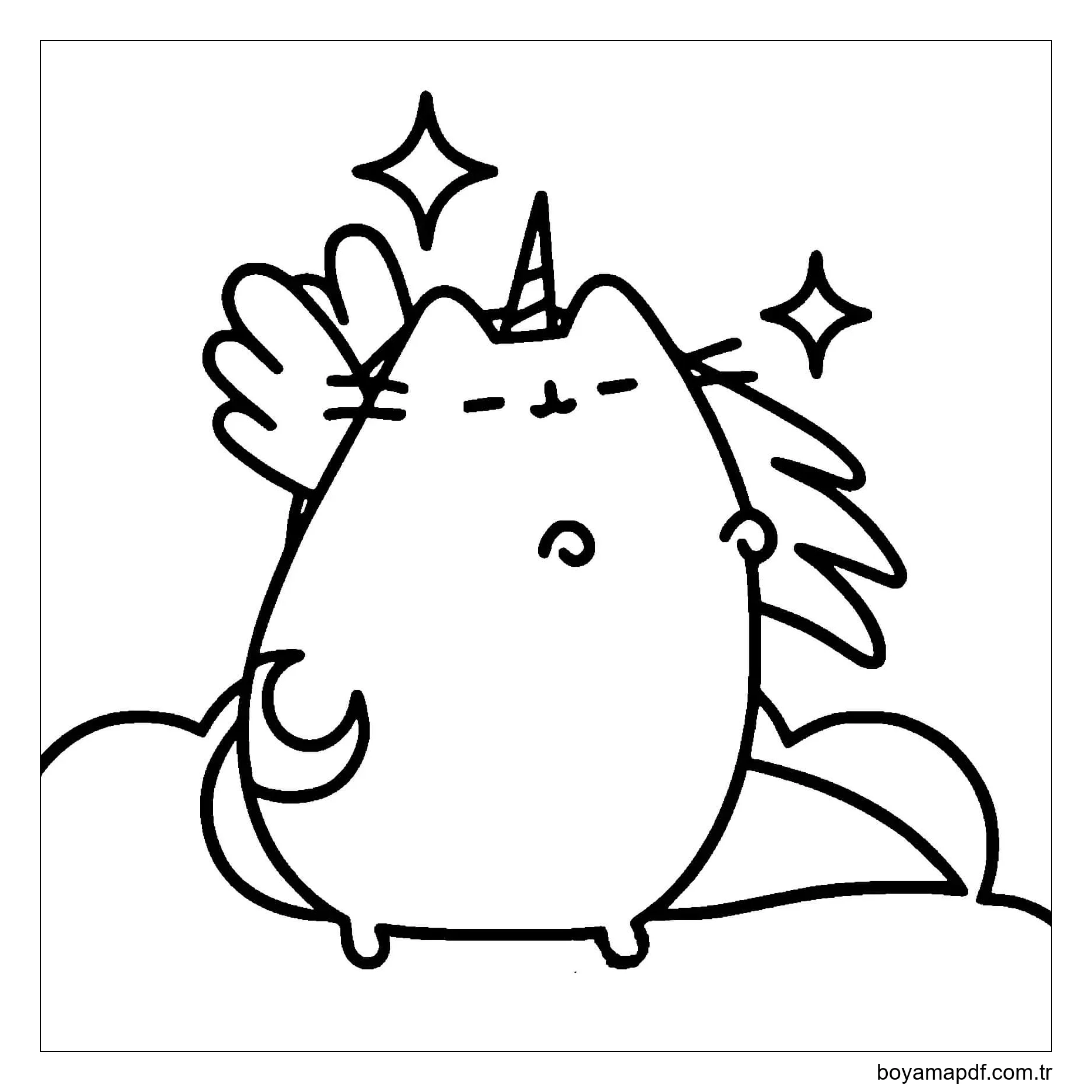 Melek Tek Boynuzlu At Pusheen Boyama Sayfası
