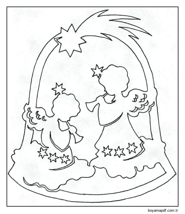 Melekler kutsal çanları süslüyor. Boyama Sayfası