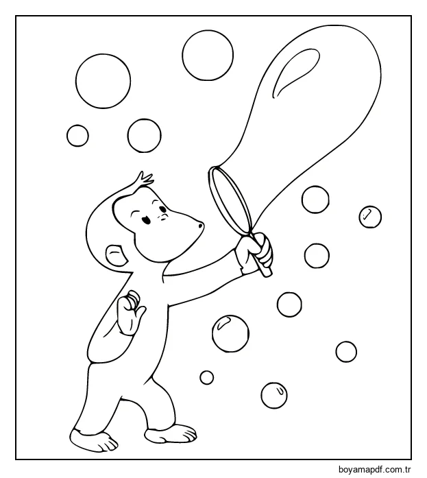 Meraklı George Baloncuk Üflüyor Boyama Sayfası