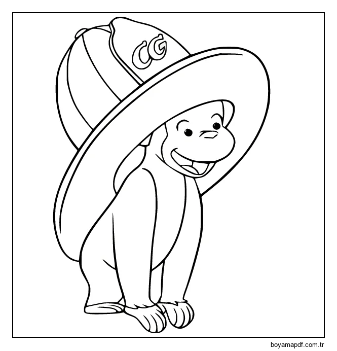 Meraklı George Büyük Bir Şapka Takıyor Boyama Sayfası