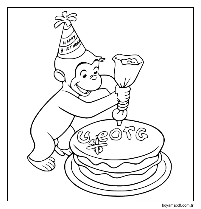 Meraklı George Doğum Günü Pastası Yapıyor Boyama Sayfası