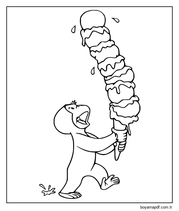 Meraklı George Dondurma Yiyor Boyama Sayfası