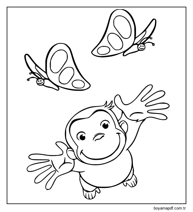 Meraklı George Kelebeklerle Oynuyor Boyama Sayfası
