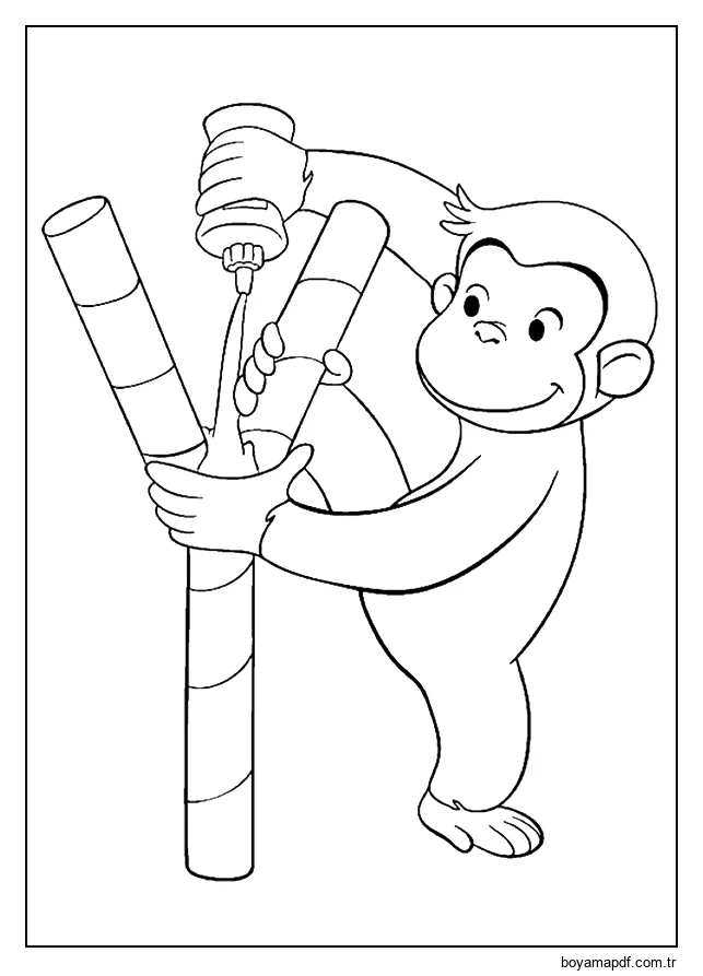 Meraklı George Tutkalla Oynuyor Boyama Sayfası