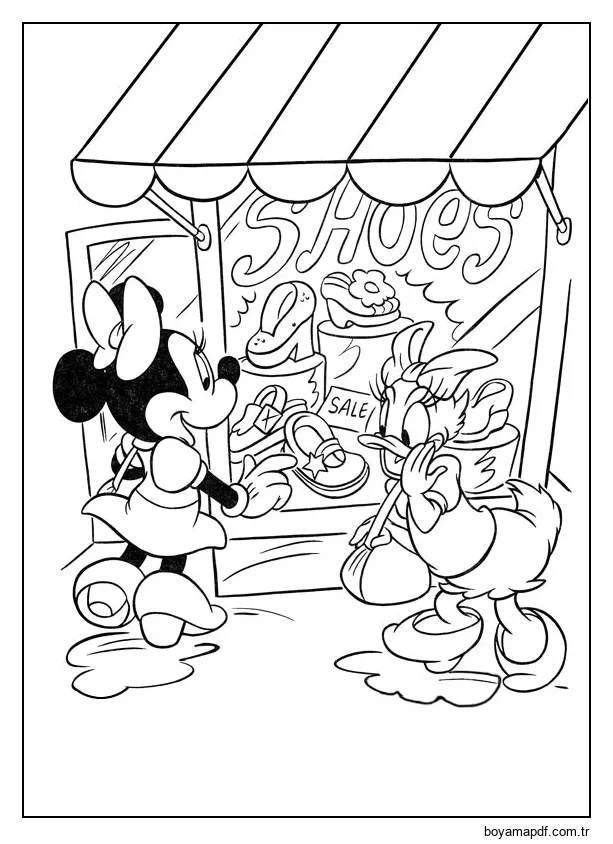 Minnie ve Daisy Alışverişe Gidiyor Boyama Sayfası