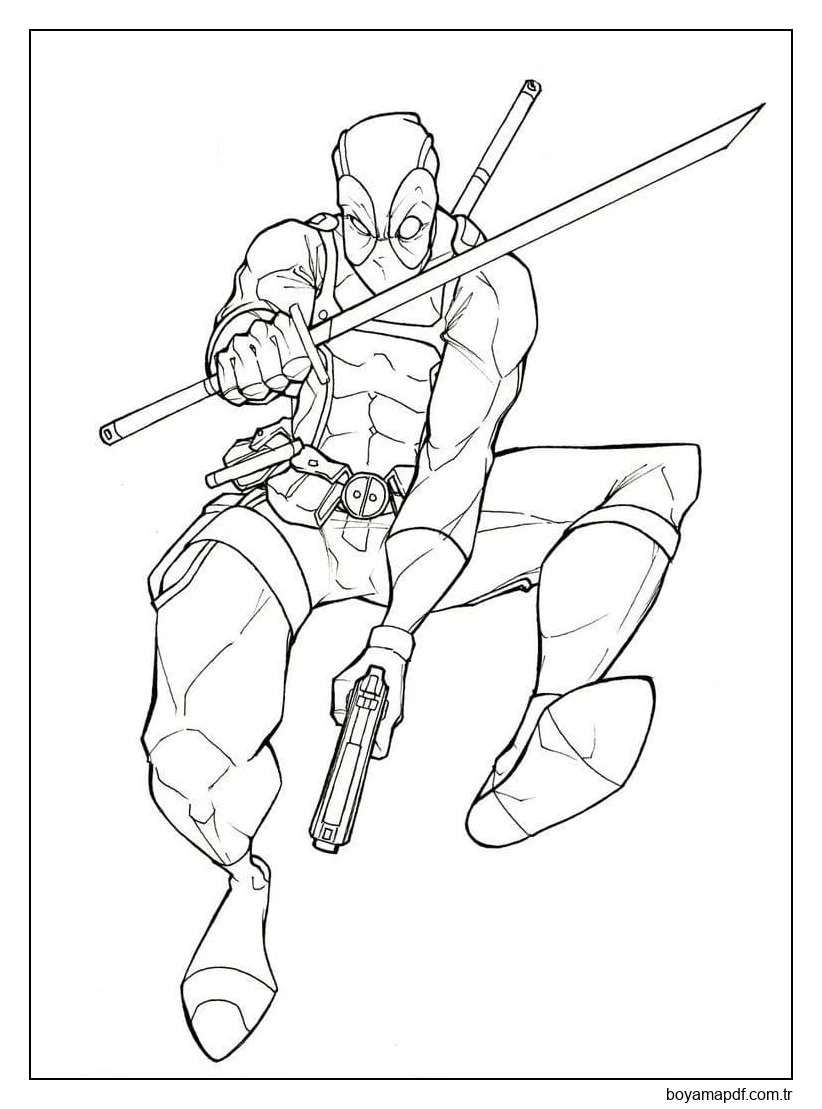 Muhteşem Deadpool'u ücretsiz çizin Boyama Sayfası