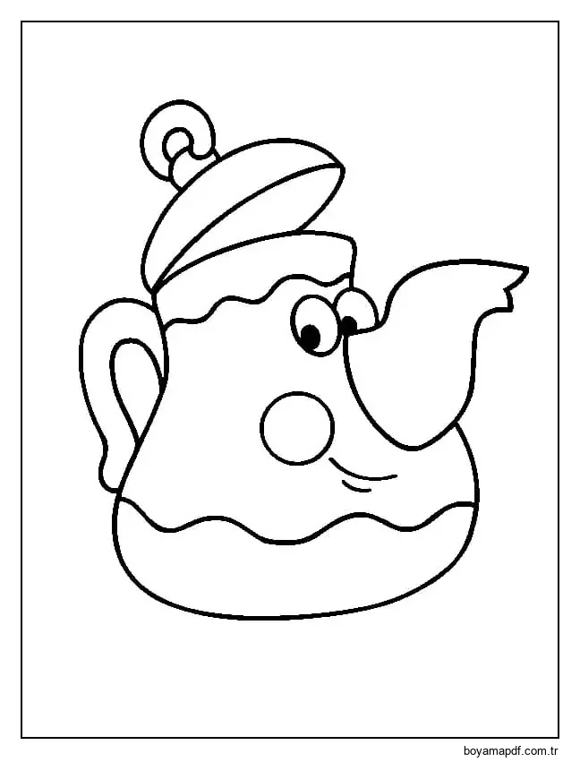 Mutlu Çaydanlık Çiz Boyama Sayfası