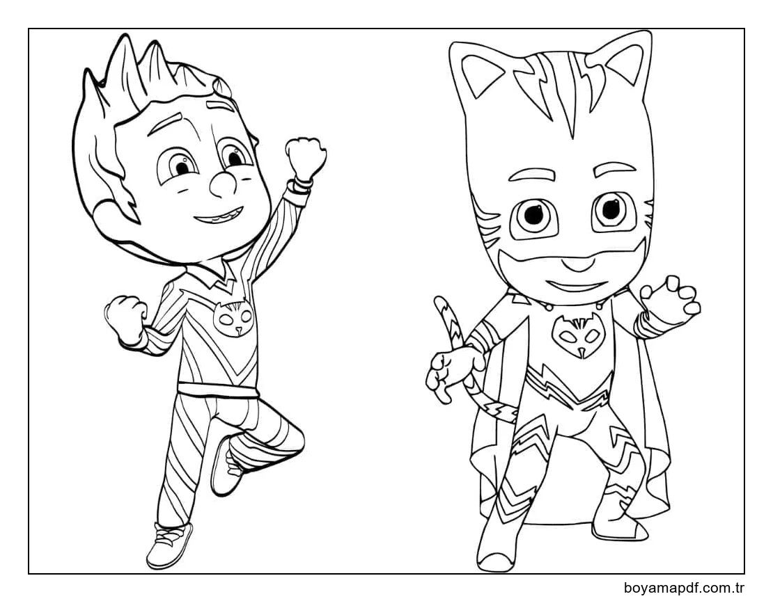 Mutlu kedi çocuk pijamaskeliler giyiyor Boyama Sayfası
