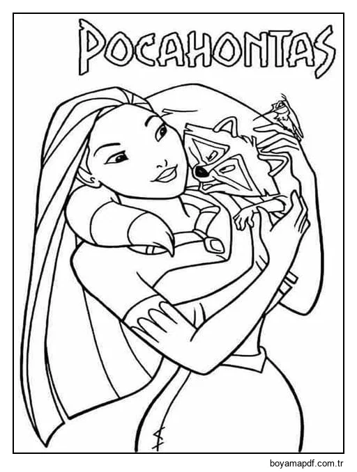 Mutlu Pocahontas Resim Boyama Sayfası