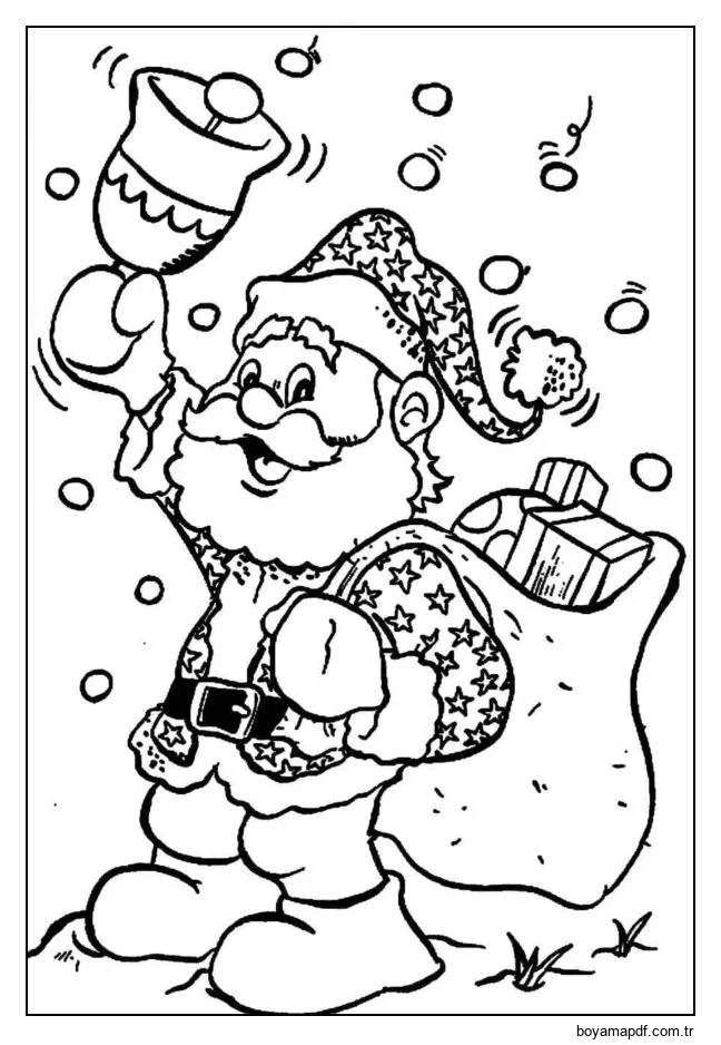 Nazik Noel Baba, Noel'in gelişini herkese haber verir. Boyama Sayfası