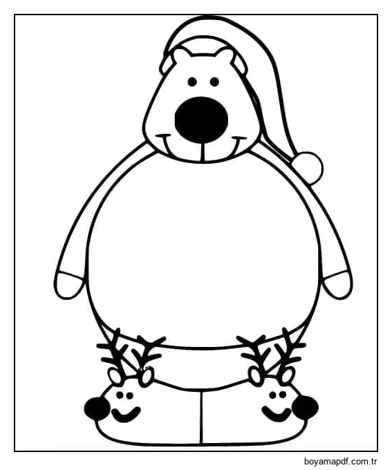 Noel Baba şapkası takan sevimli kutup ayısı Boyama Sayfası