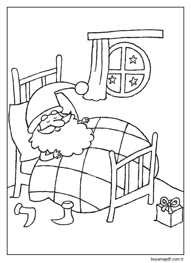 Noel Baba Uyuyor Boyama Sayfası