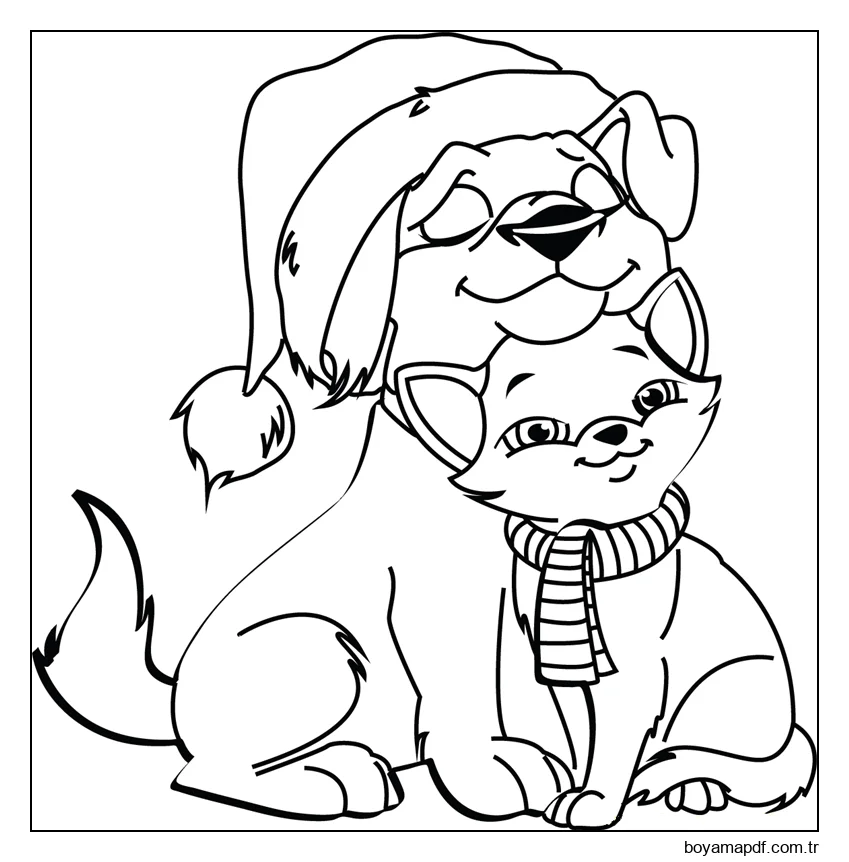 Noel'de Köpek Ve Kedi Boyama Sayfası