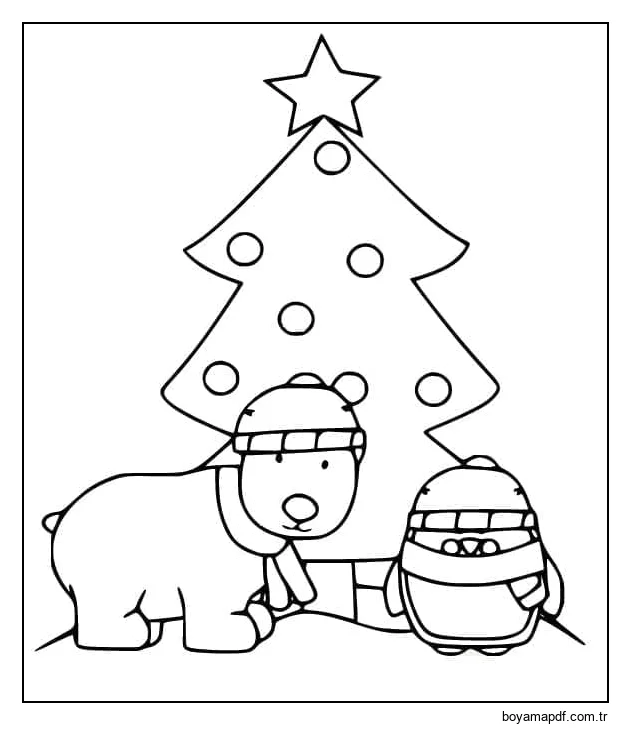 Noel'de Kutup Ayısı ve Penguen Boyama Sayfası
