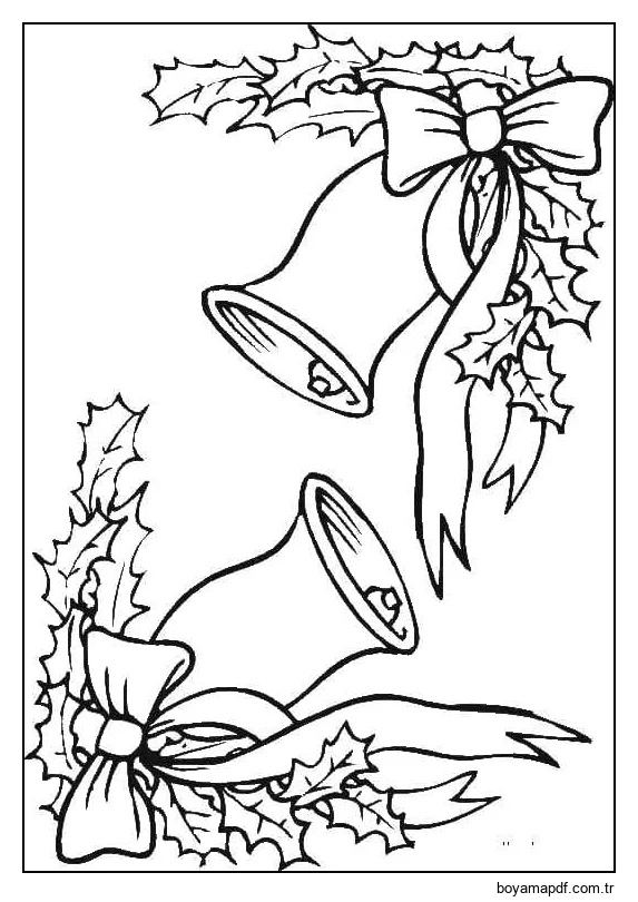 Noel için evi iki çan süslüyor. Boyama Sayfası