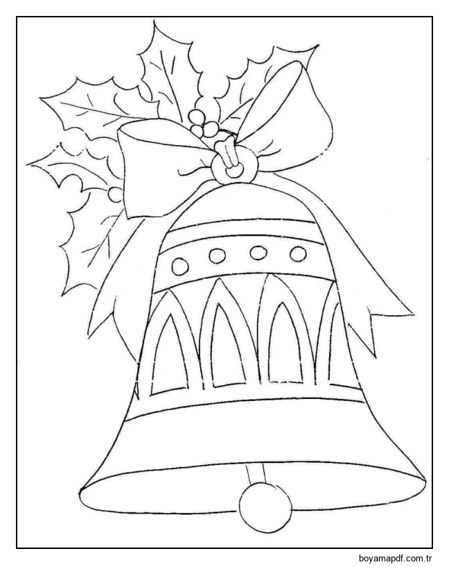 Noel'in başladığını haber veren büyük bir çan. Boyama Sayfası