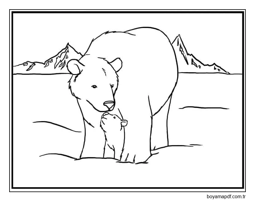 Normal Anne ve Bebek Kutup Ayısı Boyama Sayfası