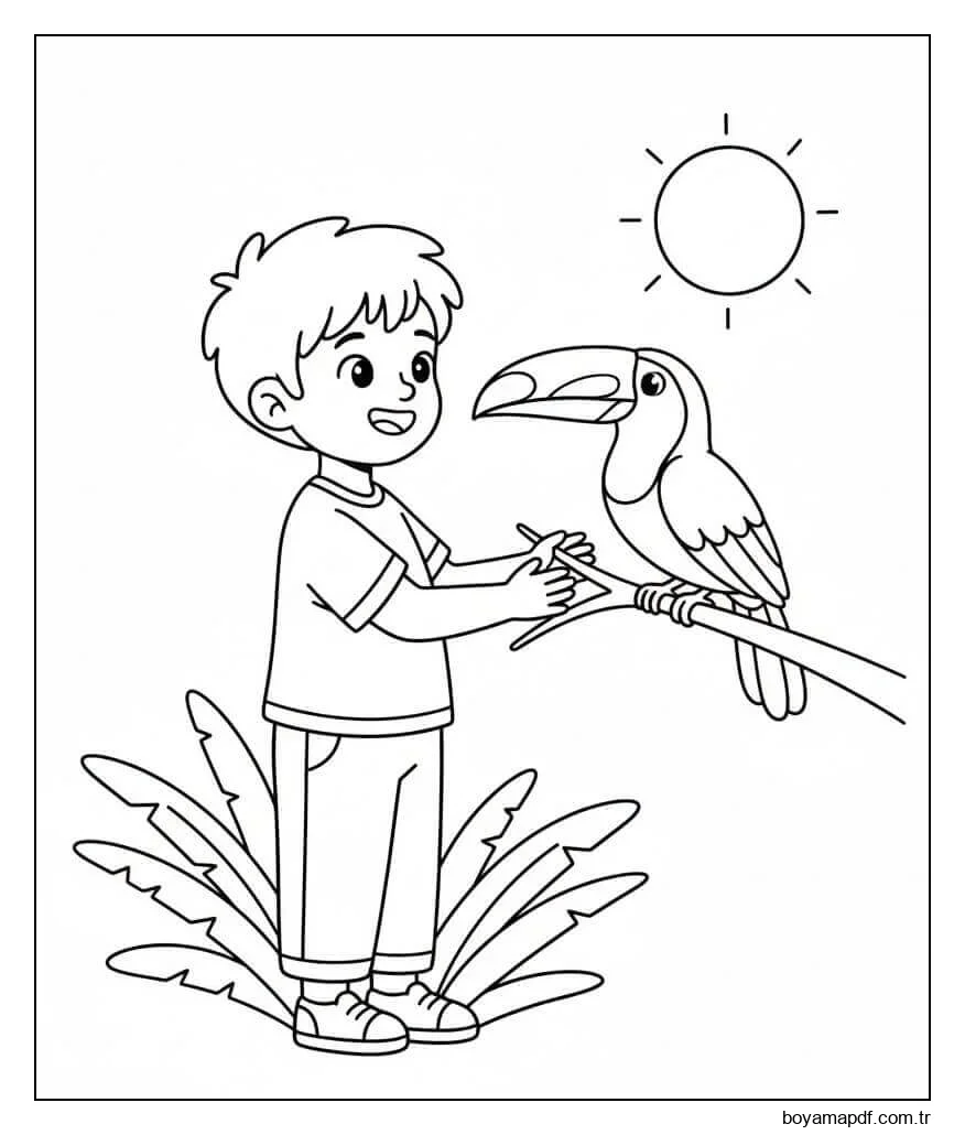 Oğlan ve Tukan Boyama Sayfası