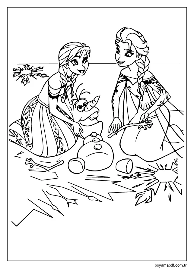 Olaf Ile Anna Ve Elsa Boyama Sayfası