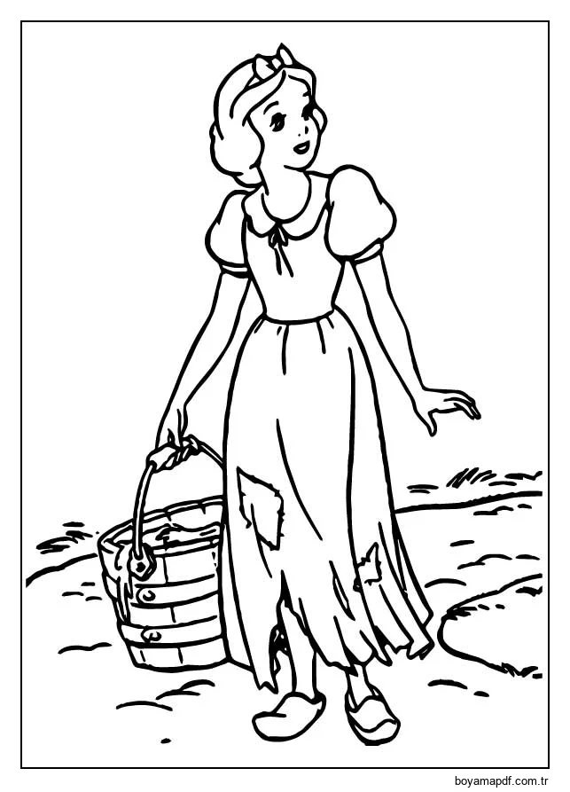 Pamuk Prenses Bir Kova Taşıma Boyama Sayfası