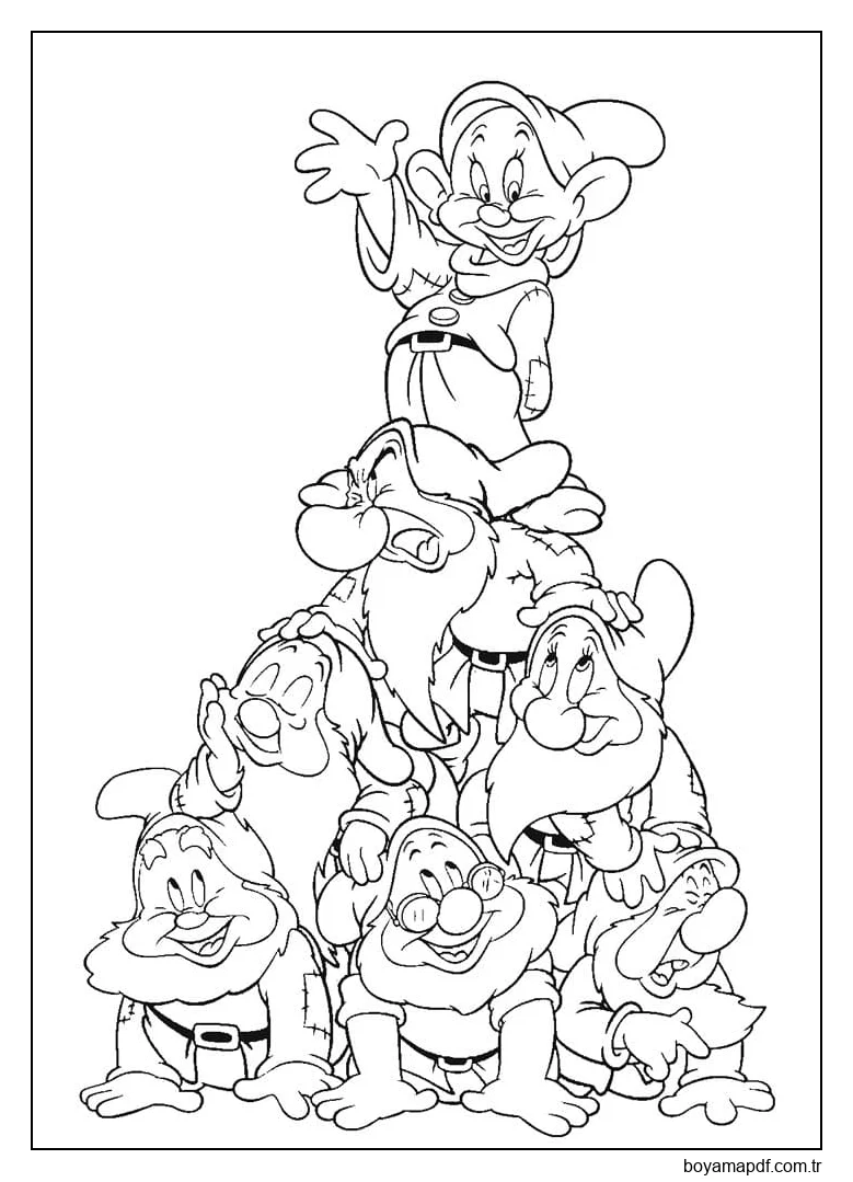 Pamuk Prenses'ten Yedi Cüceler Boyama Sayfası