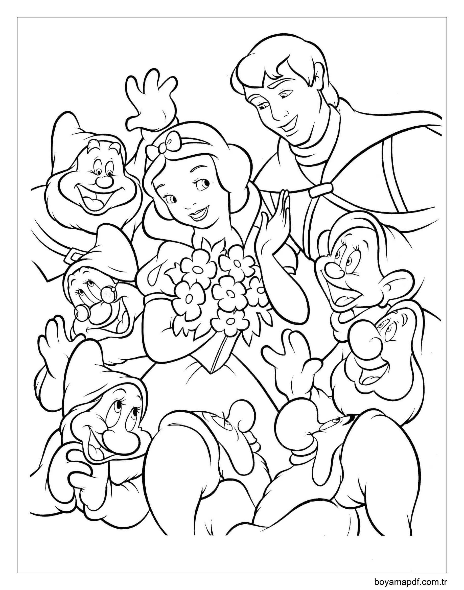 Pamuk Prenses ve Arkadaş Boyama Sayfası