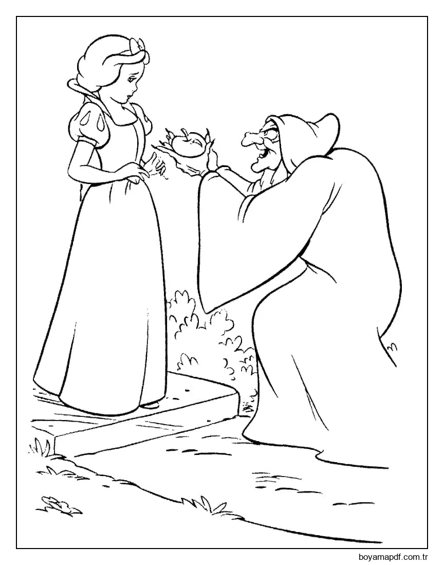 Pamuk Prenses ve Kötü Kraliçe Boyama Sayfası