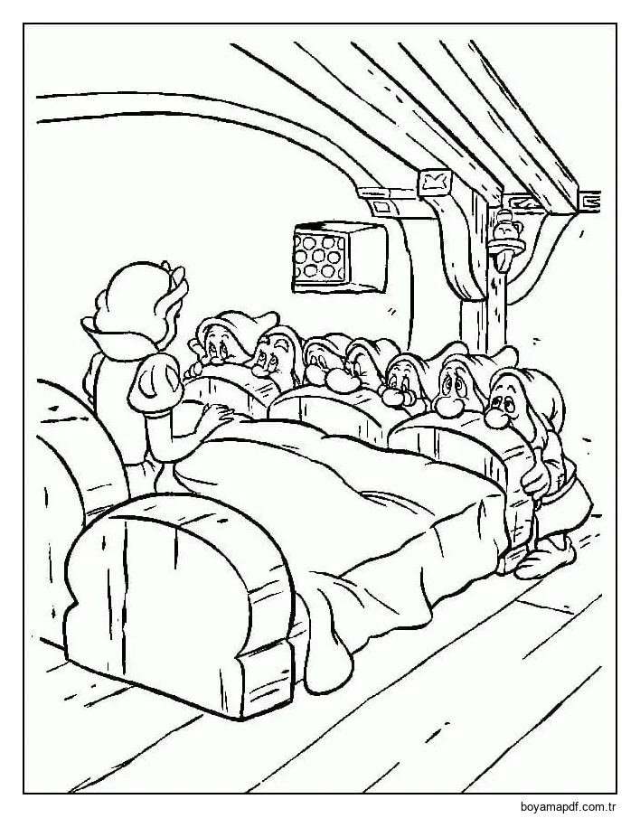 Pamuk Prenses Yedi Cücelerle Tanışıyor Boyama Sayfası