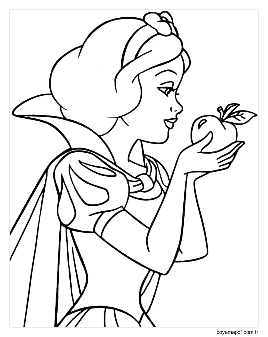 Pamuk Prenses Zehirli Elma Yiyor Boyama Sayfası