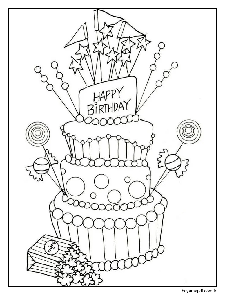 Patlamış Mısır ve Doğum Günü Pastası Boyama Sayfası