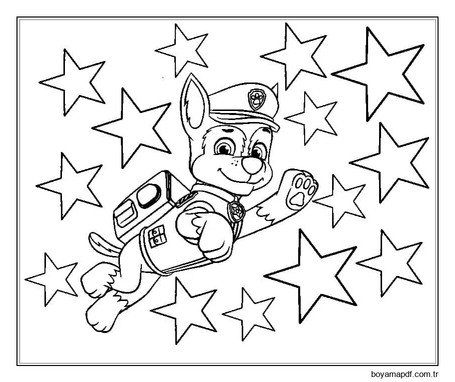Aynı temaya sahip daha fazla boyama sayfasını görüntülemek için yan alandaki önerileri veya Chase Paw Patrol kategorisini inceleyebilirsiniz.